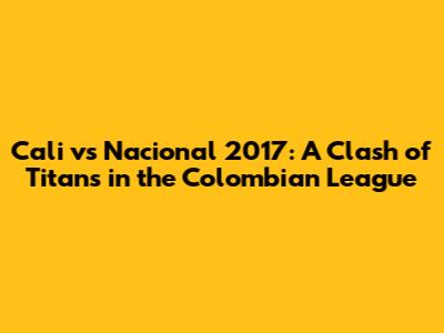 Cali Vs Nacional 2017: Epic Final Showdown