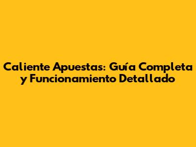 Caliente Apuestas: Guía Completa Y Funcionamiento Detallado