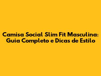 Camisa Social Slim Fit Masculina: Guia Completo E Dicas De Estilo
