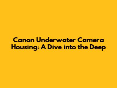 Canon Underwater Camera Housing: A Dive Into The Deep