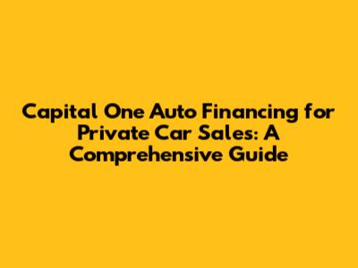 Capital One Auto Financing For Private Car Sales: A Comprehensive Guide