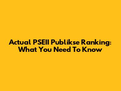Actual PSEII Publikse Ranking: What You Need To Know
