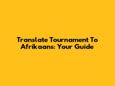 Translate Tournament To Afrikaans: Your Guide