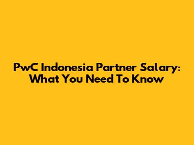 PwC Indonesia Partner Salary: What You Need To Know