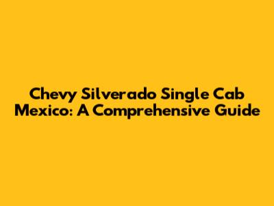 Chevy Silverado Single Cab Mexico: A Comprehensive Guide