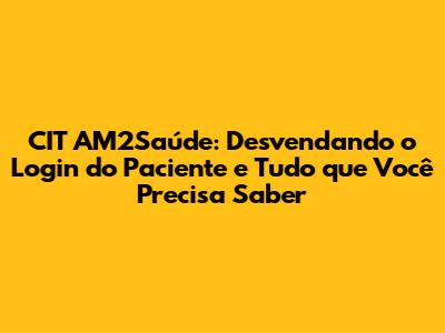 O Que é CIT AM2Saúde e Por Que Você Precisa Saber?