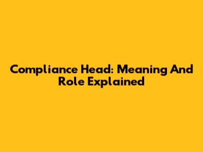 Compliance Head: Meaning And Role Explained