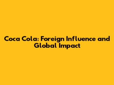 Coca Cola: Foreign Influence And Global Impact