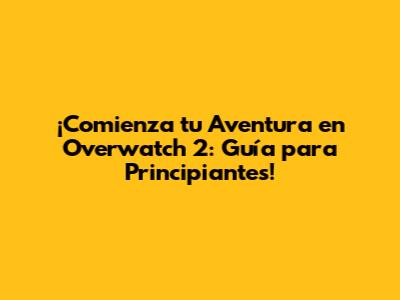 ¡Comienza Tu Aventura En Overwatch 2: Guía Para Principiantes!