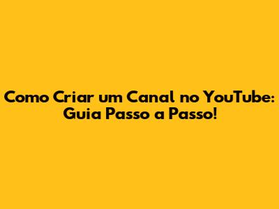 Como Criar Um Canal No YouTube: Guia Passo A Passo!