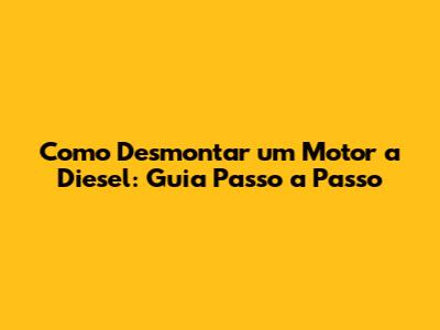 Como Desmontar Um Motor A Diesel: Guia Passo A Passo