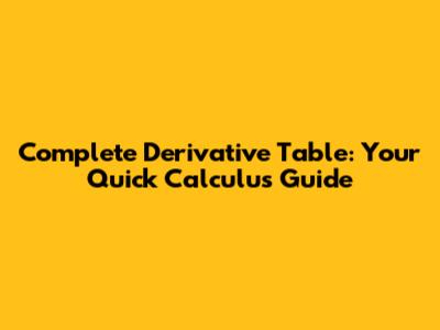 Complete Derivative Table: Your Quick Calculus Guide