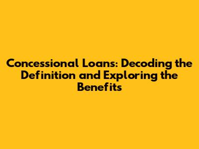 Concessional Loans: Definition, Benefits, And How They Work