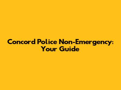 Concord Police Non-Emergency: Your Guide