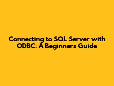 Connecting To SQL Server With ODBC: A Beginner's Guide