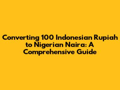 Converting 100 Indonesian Rupiah To Nigerian Naira: A Comprehensive Guide