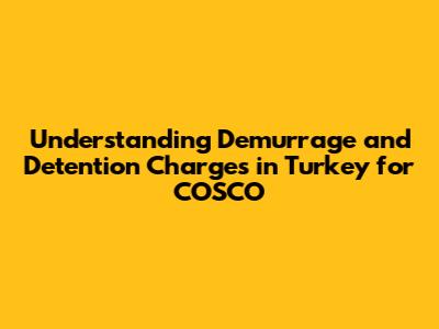 - What is the standard free time for demurrage and detention in Turkey? The free time can vary based on the port, the cargo type, and your agreement with COSCO. Typically, it ranges from 5 to 10 days for both demurrage and detention. Always verify the specific terms in your shipping documents or with your freight forwarder.
