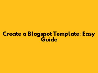 Create A Blogspot Template: Easy Guide