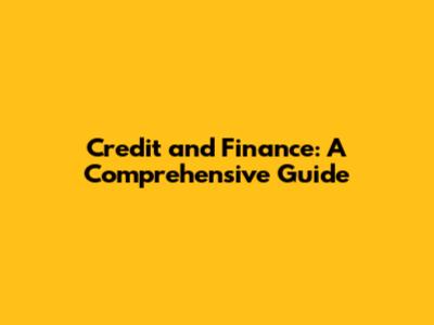 Credit And Finance: A Comprehensive Guide