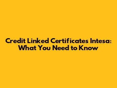 Credit Linked Certificates Intesa: What You Need To Know
