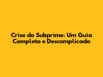 Crise Do Subprime: Um Guia Completo E Descomplicado