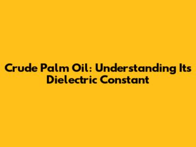 Crude Palm Oil: Understanding Its Dielectric Constant