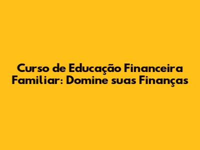 Curso De Educação Financeira Familiar: Domine Suas Finanças