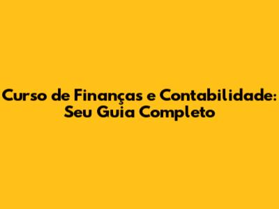 Curso De Finanças E Contabilidade: Seu Guia Completo