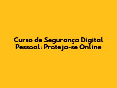 Curso De Segurança Digital Pessoal: Proteja-se Online
