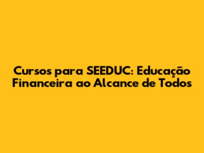 Cursos De Educação Financeira: SEEDUC