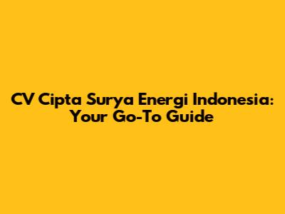 CV Cipta Surya Energi Indonesia: A Comprehensive Overview