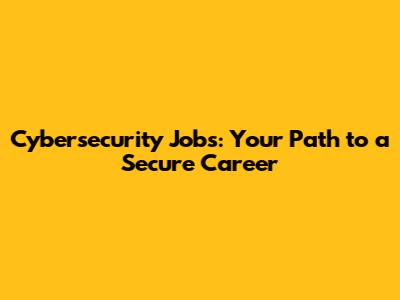 Cybersecurity Jobs: Your Path To A Secure Career