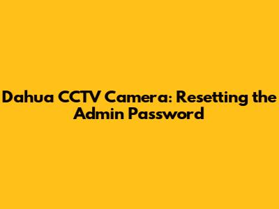 Dahua CCTV Camera: Resetting The Admin Password