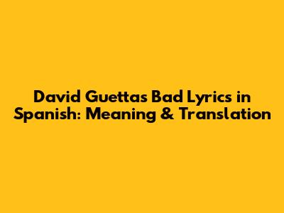 David Guetta's 'Bad' Lyrics In Spanish: Meaning & Translation