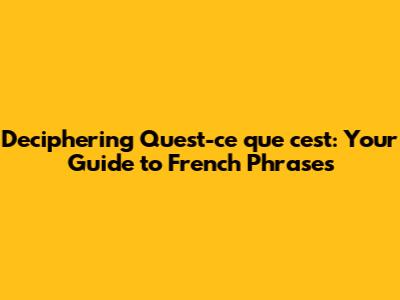Deciphering 'Qu'est-ce Que C'est': Your Guide To French Phrases