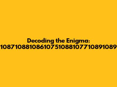 Decoding the enigma of 10871088108610751088107710891089 can be a challenging but rewarding experience. While the true meaning of the sequence may remain elusive, the process of exploration and analysis can be intellectually stimulating and personally fulfilling.