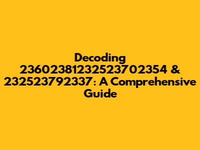 Decoding 23602381232523702354 & 232523792337: A Comprehensive Guide