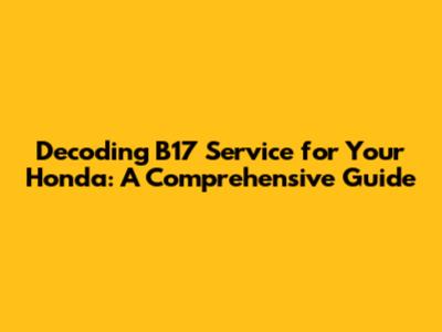 Decoding B17 Service For Your Honda: A Comprehensive Guide