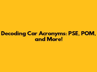 Decoding Car Acronyms: PSE, POM, And More!