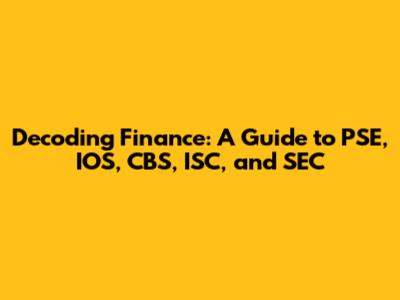 Hey everyone, let's dive into the fascinating world of finance! We're going to break down some key acronyms that you've probably heard thrown around: PSE, IOS, CBS, ISC, and SEC. Don't worry if it sounds a bit intimidating at first – we'll go through each one, making sure it's super easy to understand. So, grab your favorite beverage, get comfy, and let's decode these financial terms together. This guide is designed to be your go-to resource, providing clear explanations and real-world examples to help you navigate the often-complex landscape of finance. Whether you're a student, a professional, or just someone curious about how the financial world works, this article will give you the foundational knowledge you need. We'll start with the Philippine Stock Exchange, exploring its role and importance, and then move on to the other key players and institutions. Ready? Let's get started!