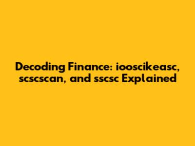 Decoding Finance: Iooscikeasc, Scscscan, And Sscsc Explained