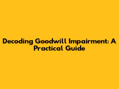 Decoding Goodwill Impairment: A Practical Guide