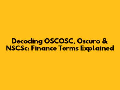 Decoding OSCOSC, Oscuro & NSCSc: Finance Terms Explained