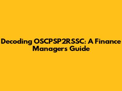Decoding OSCPSP2RSSC: A Finance Manager's Guide