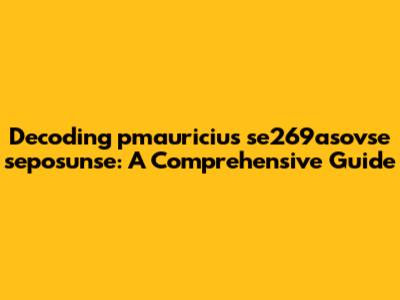 Decoding Pmauricius Se269asovse Seposunse: A Comprehensive Guide