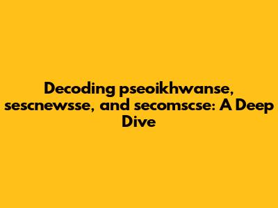 Decoding Pseoikhwanse, Sescnewsse, And Secomscse: A Deep Dive
