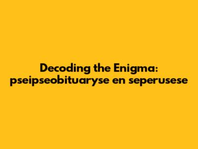 Decoding The Enigma: Pseipseobituaryse En Seperusese