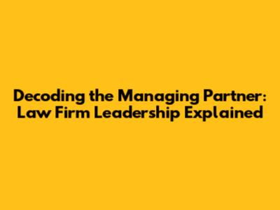 Decoding The Managing Partner: Law Firm Leadership Explained