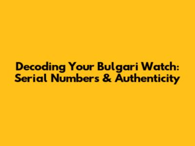 Decoding Your Bulgari Watch: Serial Numbers & Authenticity