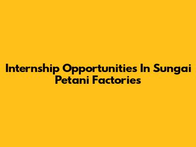 Internship Opportunities In Sungai Petani Factories